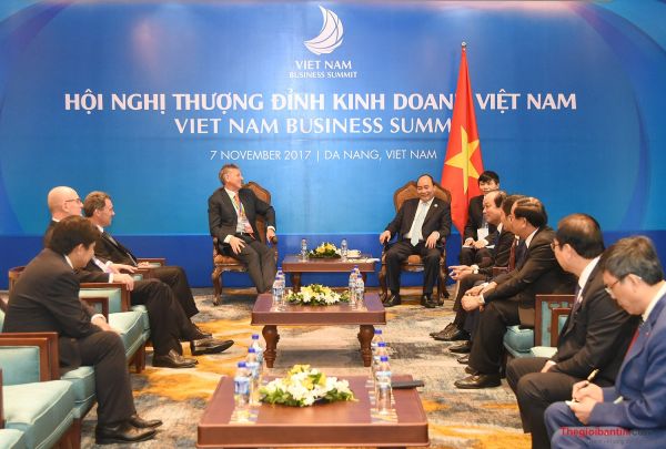 Chiều 7/11, tại Cung hội nghị Quốc tế Ariyana Đà Nẵng, bên lề Hội nghị Thượng đỉnh Kinh doanh Việt Nam trong khuôn khổ Tuần lễ cấp cao APEC, Thủ tướng Nguyễn Xuân Phúc tiếp ông Liam Mallon – Chủ tịch Tập đoàn dầu khí đa quốc gia của Hoa Kỳ – Exxon Mobil. Tại buổi tiếp, Thủ tướng đã đánh giá cao ông Chủ tịch và Tập đoàn Exxon Mobil đã tích cực hưởng ứng, ủng hộ và tham dự các hoạt động của Tuần lễ Cấp cao APEC 2017 tại Việt Nam. Đồng thời mong muốn Exxon Mobil cùng các doanh nghiệp Hoa Kỳ đóng góp tích cực vào thảo luận tại APEC 2017, có tiếng nói thúc đẩy liên kết kinh tế trong khu vực.