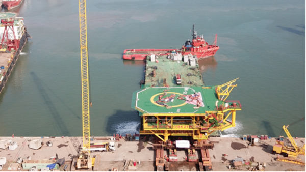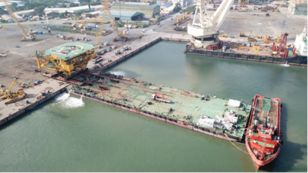 Vietsovpetro hạ thủy thành công Khối thượng tầng Giàn đầu giếng BK-21